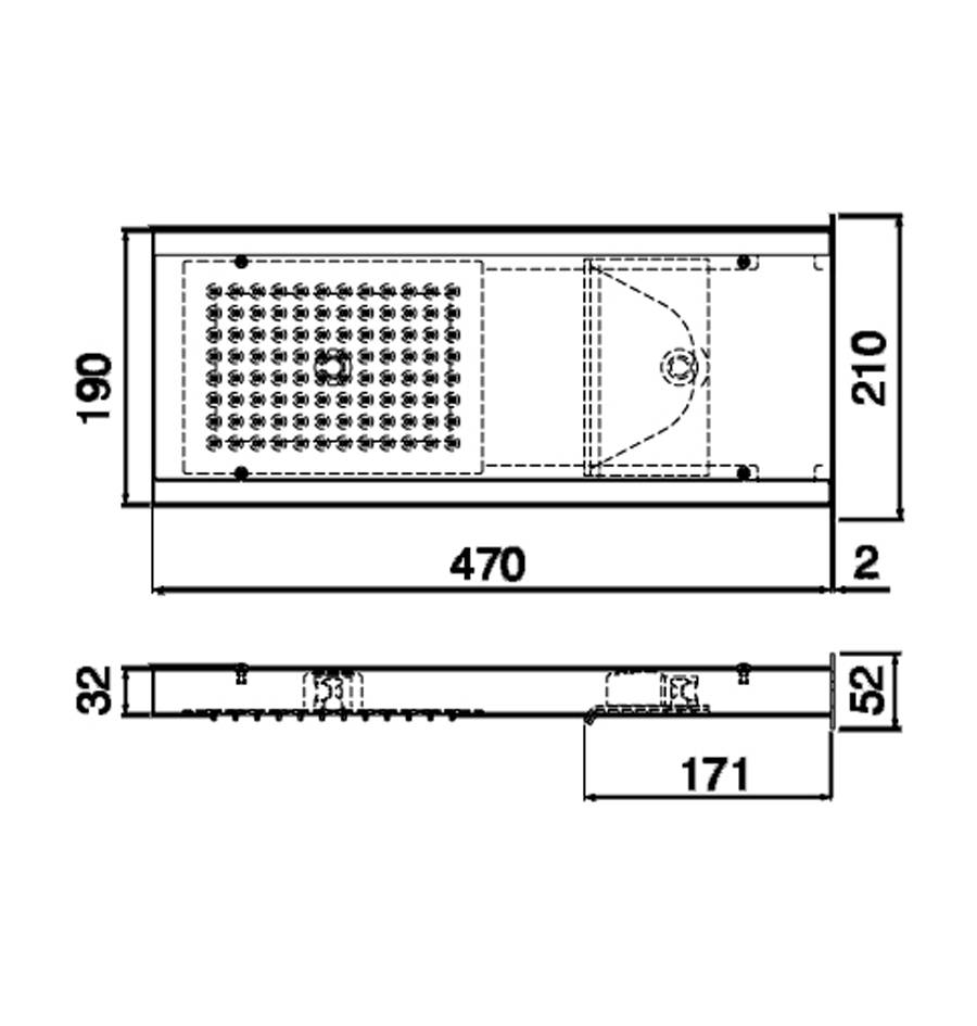 Soffione a Mensola Piccolo Acciaio Marca Zazzeri Modello Shirò Doccia Pioggia Cascata Incasso finitura Inox Lucido parete muro 470x190 mm arredamento bagno garanzia 10 anni azienda qualità made in italy