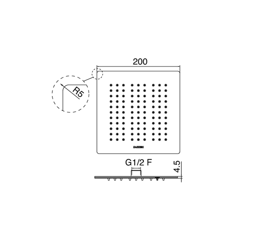 Soffione doccia 200x200mm marca Zazzeri modello Moon Mono finitura acciaio inox cromato anticalcare parete soffitto arredamento casa home arredo bagno azienda certificata garanzia 10 anni qualità made in italy