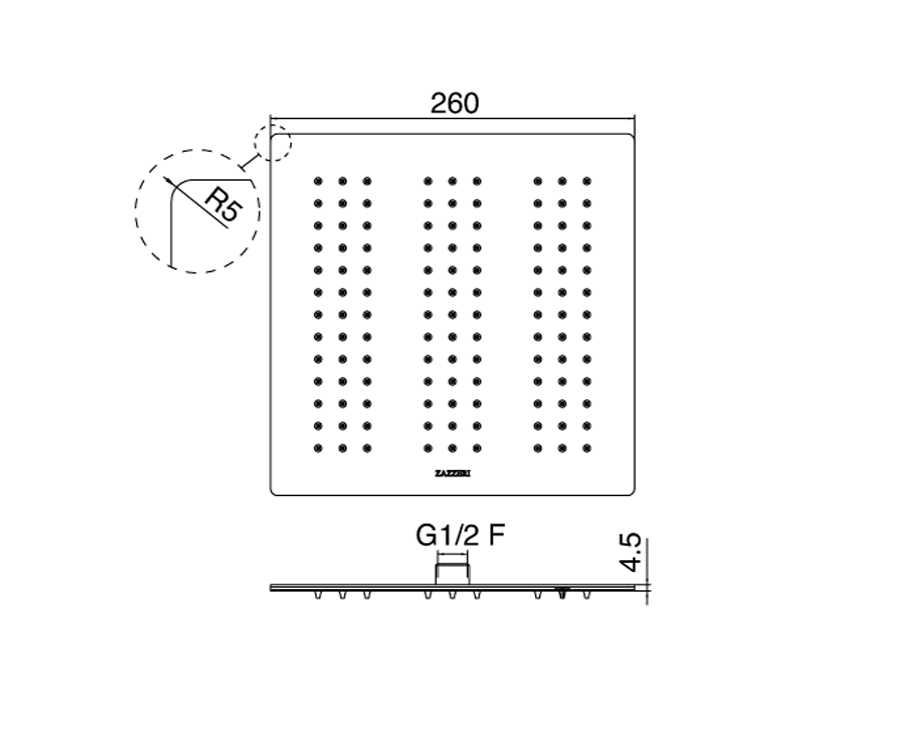 Soffione doccia 260x260 mm marca Zazzeri modello Moon Mono finitura acciaio inox cromato anticalcare parete soffitto arredamento casa home arredo bagno azienda certificata garanzia 10 anni qualità made in italy