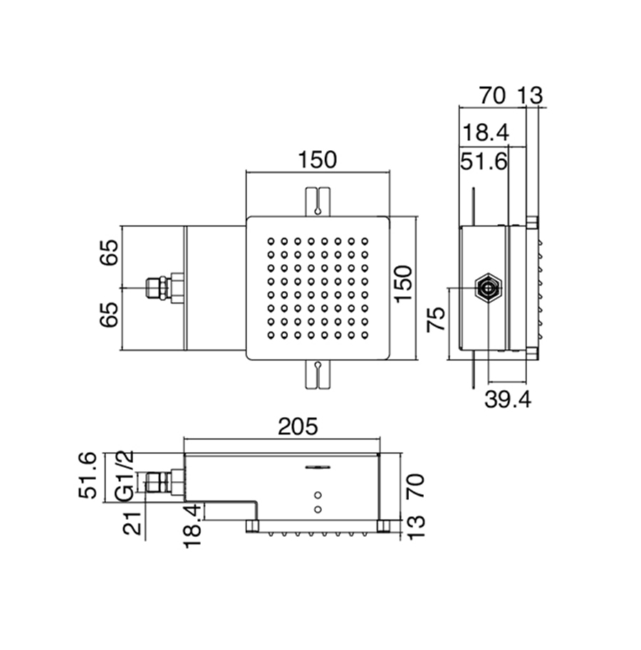 Soffione doccia quadro marca Zazzeri modello Qquadro parete 150x150 mm Flyfall acciaio inox finitura Lucido anticalcare rubinetteria arredamento bagno casa garanzia 10 anni azienda certificata qualità made in italy