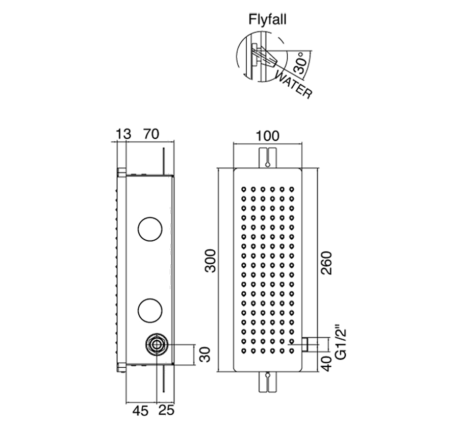 Soffione doccia verticale marca Zazzeri modello Shower Unix parete 100x300 mm Flyfall acciaio inox finitura lucido anticalcare rubinetteria arredamento bagno garanzia 10 anni azienda certificata qualità made in italy